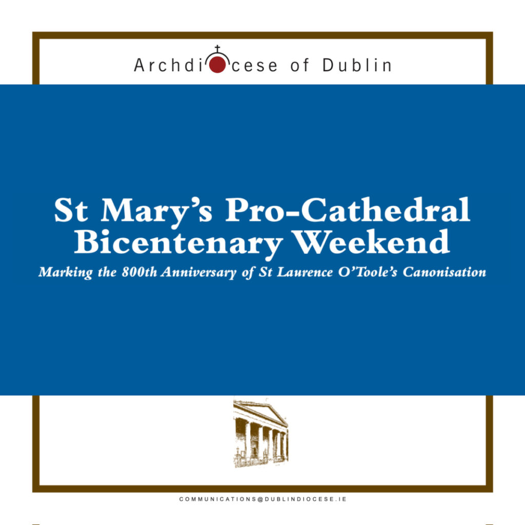 This month, St Mary’s Pro-Cathedral celebrates its bicentenary. We also mark this year the 800th anniversary of the canonisation of St Laurence O’Toole, our diocesan patron. Attached to this email is the schedule of events for the St Mary’s Pro-Cathedral Bicentenary Weekend, November 14/15/16. You are asked to please share this schedule in your parish.